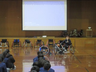 体験の後、柳本選手がお話ししてくださったことに、三つの大切なことがあったと思います。一つは、車いすバスケを一緒に楽しんでほしい、ということ。車いすバスケは障害を持つ人の競技、ではなく、みんなが楽しむ競技としてぜひ参加したり、応援したりしてほしいとおっしゃっていました。二つ目は、自分の目標に向かって取り組んでほしいこと。小学校の時、自分は他の子たちと一緒に走れなかったことで「いやっ」て言われたことや、中学や高校に入ってからも辛いことがあったことも。でも、全日本の選手に選ばれるよう取り組んで、一度は選ばれなかったけれどあきらめずに頑張ったことで、今の自分がいるとおっしゃっていました。三つめは、障害を持つ人の目線で考えて、行動してほしいこと。車いす専用の施設があれば、そこはいつでも車いすの人が使えるようにしておいてもらえると嬉しいとおっしゃっていました。