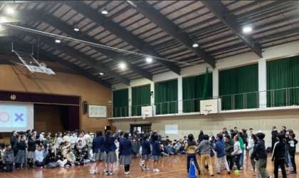 授業体験が終わると、生徒会本部主催の部活動紹介が行われました。まずは、アイスブレイクの西中〇×クイズが行われ、最後まで勝ち残った人たちには、素晴らしい景品がプレゼントされていました。そして、動画による部活動紹介が行われ、来年度入学したときに度の部活動に入るか、みんな真剣に見てくれていました。