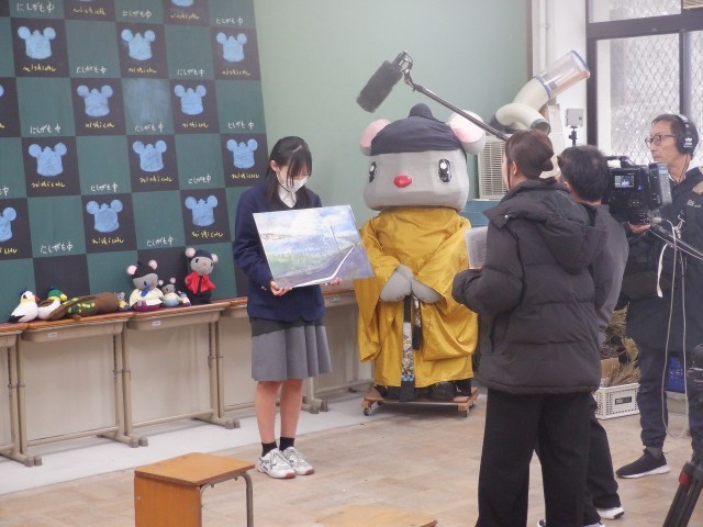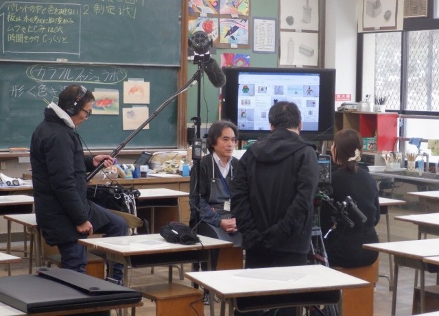 10日(火)の午後、東京のNHKから取材に来られました。全国教育美術展の学校賞をいただいたことで、西賀茂中学校の美術科・美術部の取組をテレビで紹介したい、とのことでした。ディレクターの方は、Y先生の授業や取組について、さらには美術部の取組について取材され、皆さんの美術を楽しむ様子にとても関心を示しておられました。そして、作物を育てるビニールハウスを描いた作品について、描かれた現地にも足を運び、作品を描いてくれた2年生生徒と、農家の方の交流の様子も取材されました。この様子は、Eテレで3月下旬に放送されるとのこと、今からとっても楽しみです!協力してくれた生徒の皆さん、ありがとうございました!