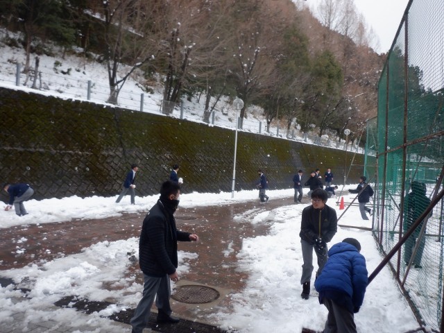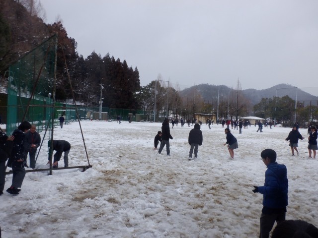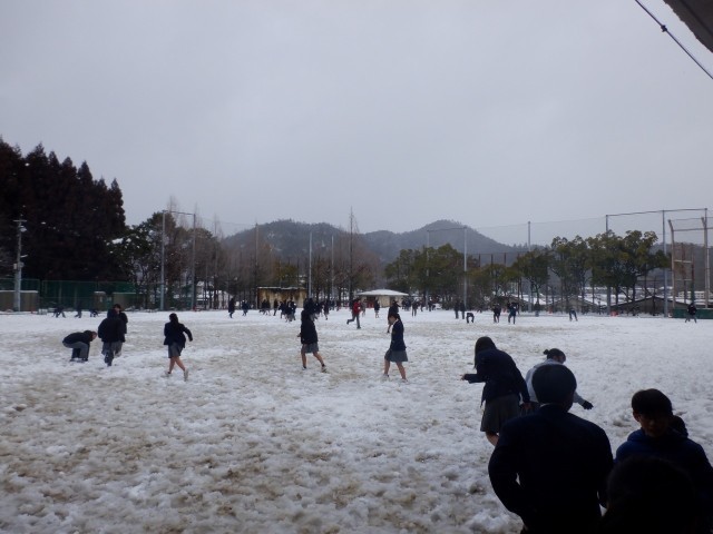 4日前には、かなりの積雪があり、一面銀世界の西賀茂中学校でしたが、今日は風もなく、少し体を動かせば体は温まります。しっかり声を出して相手にボールを届け、コミュニケーションをとりながら、学習を進めています。