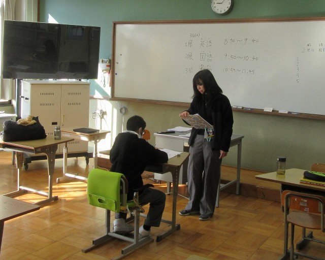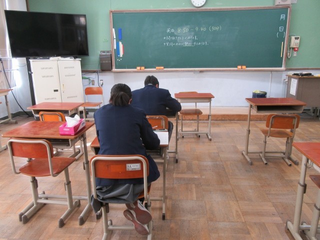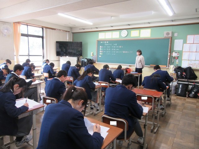 今日から、1・2年生の学年末テストが始まりました。令和7年度ラストの定期テストです。最初の写真は1年生社会科テストの様子です。歴史の原始時代から始まっていましたね。2~4枚目の写真は、1組英語科テストの様子です。学びに合わせて分かれてテストを行います。5枚目の写真は、2年生国語科テストの様子です。読み解く時間が必要なので、時間配分をうまく行ってくださいね。3年生は、先日までの公立前期選抜の後ということで、通常授業を行っています。1・2年生の皆さん、すべての力を出し切るつもりで、ぜひ頑張ってくださいね!3年生の皆さんも、自分の底力を発揮してくれていると思います。引き続き受験する人が安心して授業に臨めるよう、団体戦で参りましょう!