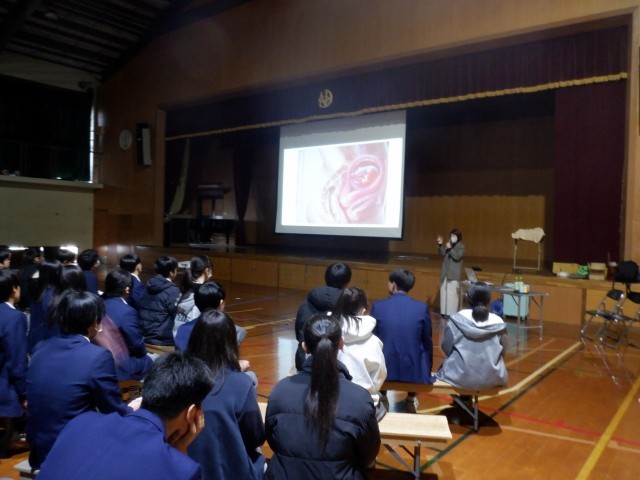 2月25日(水)5・6時間目に3年生「性に関する学習」として助産師さんのお話を聞きました。