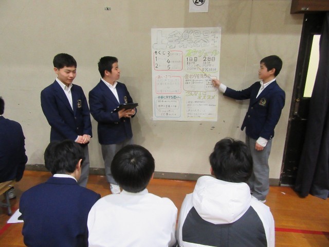 昨日の5限、そして、今日の6限、体育館では2年生による「チャレンジ体験発表会」が開かれました。チャレンジ体験とは、2年生が秋に取り組んだ職場体験学習です。そこでの取り組みの成果を発表します。聞き手は1年生の皆さんです。学級閉鎖で延期になっていたのですが、ついに実施することができました。それぞれの事業所で体験したことをもとに、どのような力が身に付いたのか、それはなぜなのかについて3分間で説明します。「周りを見る力」「コミュニケーション力」「責任を持つ力」「先のことを考えて行動する力」「臨機応変に対応する力」「積極的な姿勢」「笑顔」e.t.c.本当にたくさんの力が出てきました。そして、なぜそれが身に付いたのか、そこに共通してくるのは「お客様を大切にする」という思いが浮かび上がってきました。それぞれの事業所の方が、やはり関わってくれる人々に笑顔になってほしい、あるいは幸せになってほしい、と思いながら、実現するためにはどうすればよいのだろうと、日々取り組んでおられる様子が伝わってきました。「この力を身に付けて、あなたは今後自分の何に役立てることができますか?」と聞くと、「自分は野球部なので、あいさつをしっかりしたり、考えて動いたりすることで、よりよいプレーに生かしていきたいと思います」と返してくれたことが、心に残りました。「なりたい自分」につなげる本当に意義のある体験をしてきてくれたことがよくわかりました。きっと、1年生にとって、良い見通しができたこと思います。2年生の皆さん、この体験を生かして、ぜひ「なりたい自分」目指してくださいね!