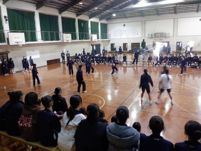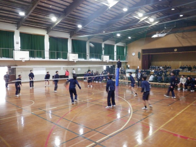 写真の様子は、3・4時間目の球技大会の様子です。クラス毎のチームに分かれて、ドッチボールとバレーボールの2種目で熱戦が繰り広げられています。