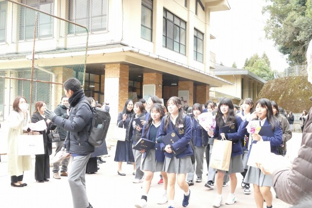 第38回卒業証書授与式が終了しました。多くの教職員、保護者に見守られながら、152名の卒業生が西賀茂中学校を巣立っていきました。 退場の際には、泣きながら歩く生徒も多く見られました。充実した3年間を過ごしたのだなと感じる良い表情をしていました。また、最後の花道を歩くときには、晴れきった笑顔で歩く姿が印象的でした。これからも西賀茂中学校で培った力を、それぞれの場所で発揮していってください。卒業生の皆さんのこれからに幸あれ!
