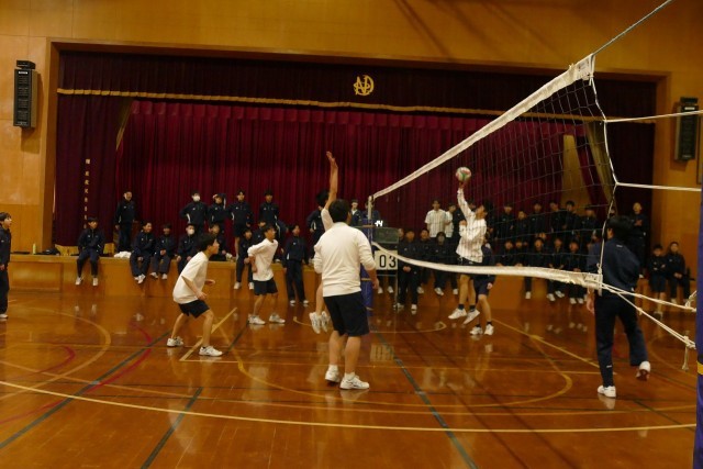 2年生は、昨日の5、6限に今年度最後となる学年レクリエーションを行い、「バレーボール」と「借り人競争」の2種目を実施しました。今年度最後の学年レクということもあり、最初の競技「バレーボール」では各クラス真剣勝負!白熱した戦いを見せてくれました。得点が決まると、各コートから大きな歓声があがりました。2年生ということもあり、ボールもよく繋がり、大変盛り上がりました。試合が後半にさしかかると、自分のクラスだけでなく、他クラスの試合も一生懸命応援する姿も見られました。「借り人競争」では、前回の学年集会でも一度行いましたが、今回は前回のように選ばれた人だけが競技に参加するという形ではなく、全員がお題に当てはまる人を選ぶという、全員参加の形で実施しました。「優しい人」「絵がうまい人」など、お題に合う人を自分のクラスから選んで、全員選び終わるのが早かったクラスから順位を決めていきました。何度も選ばれる人は何往復もしている人もいましたが、一生懸命走ってくれました!今年度ももうあと2日となりました。深まったクラス、学年の絆を大切に残りの学校生活、充実した時間を過ごしましょう!