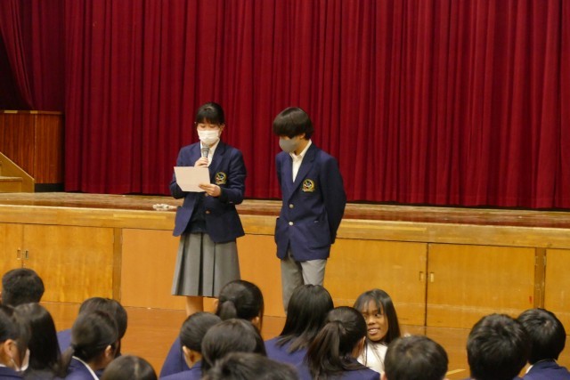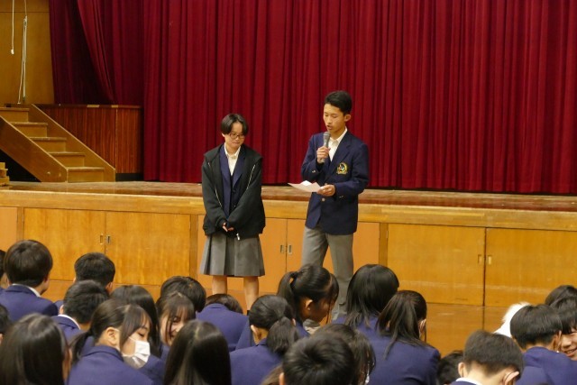 2年生は、本日の4時間目に今年度最後となる学年集会を行いました。各クラスの代議員から、この1年を振り返りクラスの良かったところ、課題が残ったところなどが発表されました。「授業を頑張れた」「行事で盛り上がりクラスの団結力が深まった」など、それぞれのクラスのこの1年の成長・頑張りが伝わってきました。「深まった絆を3年生につなげていきましょう」と言ってくれた代議員もいましたね。4月からは最高学年。勉強も部活動も日常生活も、西賀茂中学校の最高学年として、みんなでさらに成長していきましょう!