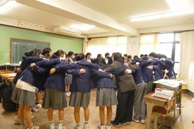 振り返りはまだまだ続きます。大掃除の後の3限には、今年度最後となる学活をしました。担任の先生からの最後の学級通信に目を通すクラス、思い出ビデオを見るクラス、クラスのみんなに一人ずつ感謝の言葉を伝えるクラス、最後の円陣を組むクラス、担任の先生にサプライズの歌を贈るクラス、それぞれに有意義な最後の時間を過ごしました。