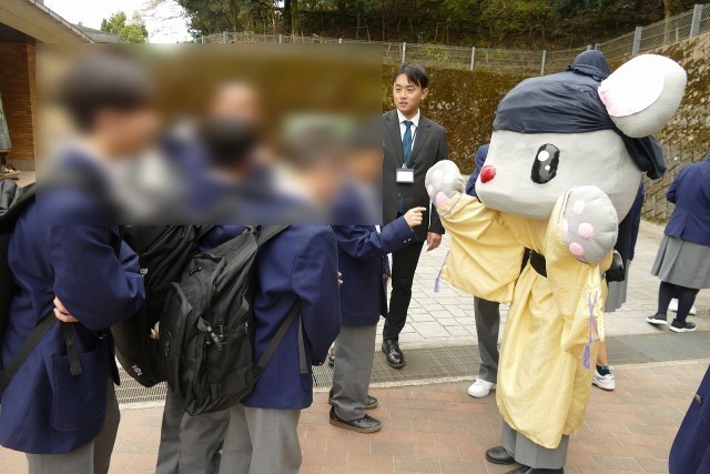学活後、新入生が帰るころには、ニシチュウもあいさつに来て、新入生とハイタッチをしていました。早く新しい生活に慣れて、楽しい学校生活を送ってくださいね!