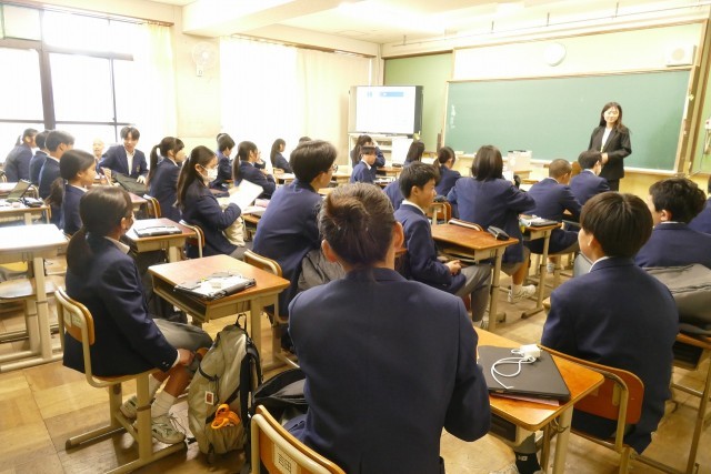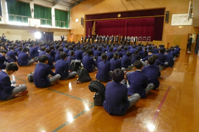 新しいクラスの発表をして、着任式では新しく西賀茂中学校に来られた先生にごあいさつをしていただきました。また、始業式での担任紹介では、担任や副担任の先生が発表されると、各クラスから歓声があがり、にぎやかな始業式となりました。