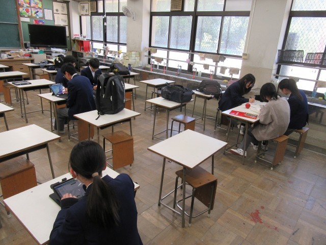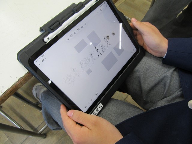 1年生が体験入部にまわっているので、少しご紹介。今日は美術部です。タブレットにタッチペンで上手に描いていますね。改めて思うのは、みんなの完成度の高さです。丁寧に丁寧に描く様は、絵やイラストが心から好き、という思いが伝わってきます。なお、美術部では、黒板アートや西ちゅうの衣装替えなど、多岐にわたる取り組みがあるそうなので、興味のある人はのぞいてみてくださいね!