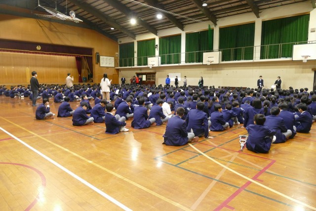 本日5時間目に避難訓練を実施しました。1年生にとっては中学生になってから初めての、2・3年生にとっては新しい教室になってから初めての避難訓練ということで、災害が起きてからの正しい対応と、避難経路を確認しました。雨天のため体育館集合で、いつもと違う形でしたが、スムーズに避難が完了しました。災害はいつ起きるかわかりません。どんなときでも自分の身(命)を守るために、正しい判断と行動がとれるよう、避難訓練での学びをいつも心得ておきましょう。