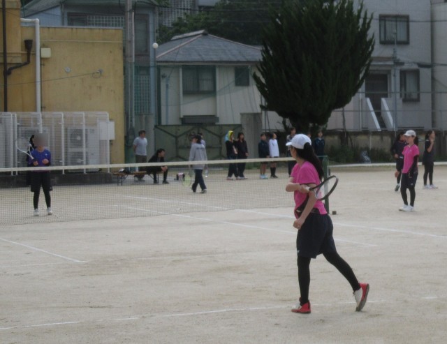 24日(土)生き方探究館グラウンドを会場に、ソフトテニス部の公式戦(個人戦)が行われました。4ペアが出場し、それぞれ向島秀蓮小中学校、京都御池中学校と対戦しました。結果は、4ペアとも敗れましたが、敗者復活戦で1ペアが本選に出場することができました。これから団体戦がありますので、そこに向けてぜひ頑張ってくださいね!応援しています。