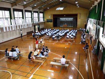 本日,体育館において私の主張学年大会が行われました。1年生は1・2限に,各クラスから選ばれた代表者17名が,それぞれのテーマについて発表しました。部活動や宿題などの身近な話題を扱ったものから,障害のある方への思い,戦争に関するものまで,様々な主張を聴くことができました。