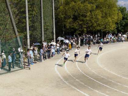「男子学級対抗リレー」です。クラスの意地をかけて,全力疾走です。