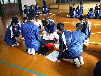 本日午前,2年生は救命救急法の授業を行っています。北消防署から講師の方をお招きし,人形とAEDを用いて,心肺蘇生法について学んでいます。いざという時に役立てられるよう,しっかりと身に付けておきましょう!