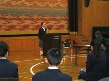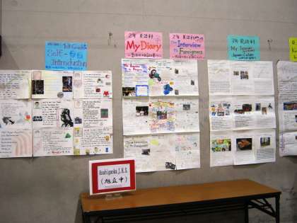 11月5日(日)に行われた英語学習発表会において,本校からは1年生女子が暗唱の部に参加しました。入賞は逃しましたが,生き生きとした素晴らしい発表でした。また展示の部では,夏休みの課題を出展しました。