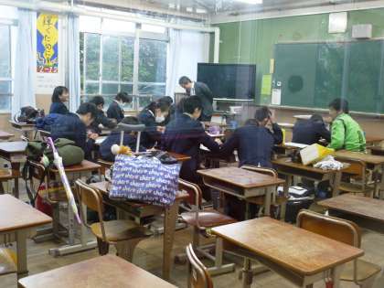 第4回定期テストに向けて,放課後の学習会が昨日から始まりました。教室に残って取り組んでいる生徒たちは,集中して頑張っていました。この後は,家庭学習にもしっかり取り組んでください。