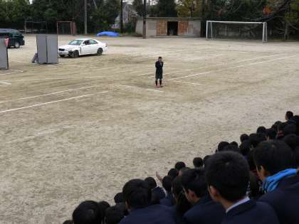 最後には警察の方からのお話もあり,事故に巻き込まれないためにも,また事故を起こさないためにも,十分に気をつけなければならないという思いを強くしました。事故を再現していただいたスタントマンの方々,また自転車安全教室実施にご尽力いただいた関係者の方々,本当にありがとうございました。