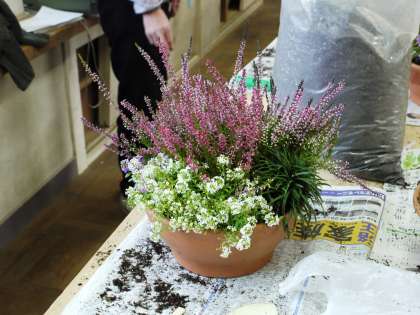 本日午後1時30分から,本校木工室においてPTA補導委員会主催の「ガーデニング教室」が開催されました。12名の方の参加があり,にぎやかに楽しく取り組まれていました。今年も,和洋の様々な植物を使った鉢植えの作品となりました。