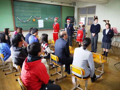 本日13日(水)の3・4限に,1組のクリスマス会が第1音楽室で行われました。みんな元気よくクリスマスソングを歌ってくれたり,ハンドベルやリコーダーを楽しく演奏してくれました。ありがとうございました。本当にすばらしい演奏会でした。