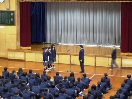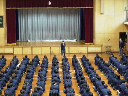 いよいよ3期のスタートです。本日1限,冬休み明けの全校集会を体育館で行いました。表彰に続いて,校長先生からはご自身の受験経験を基にした激励のお話があり,最後に生徒会長からの話で集会は終了しました。短い3期です。悔いの残らないよう頑張りましょう!