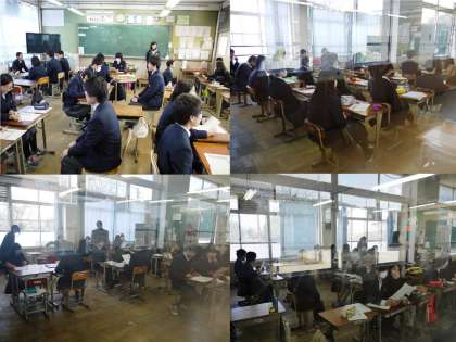本日5限の学活を利用して,3年生の面接練習が各クラスで行われました。リラックスした雰囲気の中で,お互いの不十分な部分を指摘し合い,各自放課後に行われる個別の面接練習に備えていました。十分に準備を整え,自信を持って面接に臨めるようにしましょう!