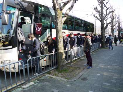8時45分,3年生はNGKに向けて,無事出発しました。天気も晴れ。今日は,思い切り楽しんできてください!