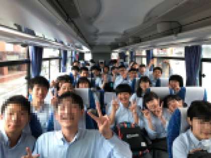 伊丹空港へ向かうバスの中は,笑顔が一杯です。