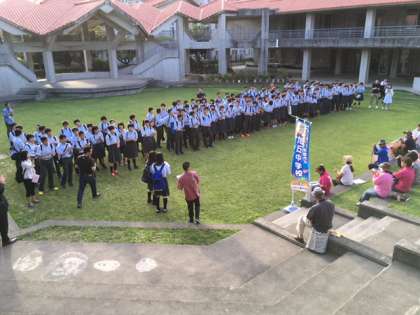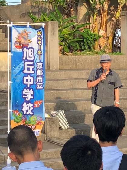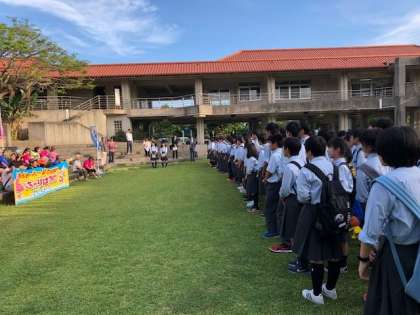 入村式を終えた生徒のみなさんは,それぞれの民家の方の指示で本日の宿泊場所へ移動。民家のおじい・おばあの郷土料理をいただいたり,戦争の話をお伺いしたりします。また,翌朝は各民家で朝食を摂ったあと農山漁村生活体験(沖縄のいろいろな文化に触れる体験活動)が待っています。各民家での昼食のあと離村式で全員集合となります。読谷村での1泊2日,最高の思い出となりますように!
