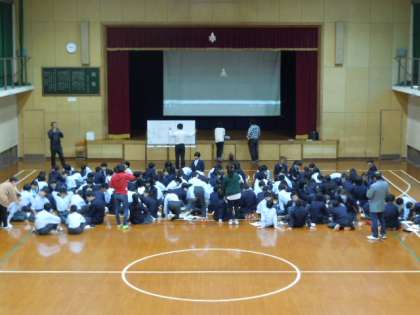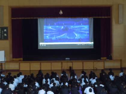 1年生では,「リオオリンピック閉会式」「MIKIKO世界を魅了したリオ閉会式プレゼンの舞台裏」という映像教材を使って,体育館で学年道徳を行いました。我が国の伝統と文化の尊重について考えました。2020年東京オリンピックの総合プロデューサーだとしたらどのような演出をしたいかなどを考えました。