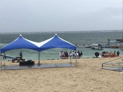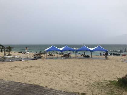 雨は小雨,海の中は暖かいとのことです。