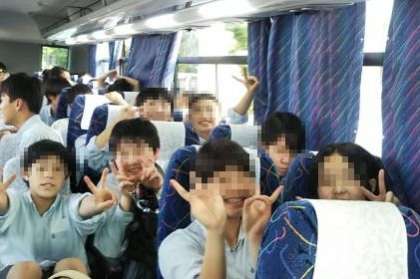 帰りのバスの画像をアップします!素敵な笑顔が3日間の宿泊学習を物語っています。