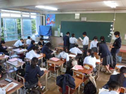 今日も1学期中間テストに向けて,放課後の学習会がありました。気温も上昇し,少し蒸し暑くなりましたが,生徒のみなさんは真剣に学習に取り組んでいました。