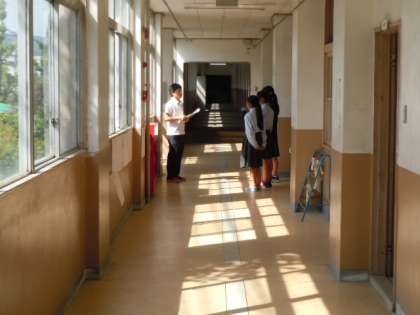 2年生は,来週に行われるチャレンジ体験に向け,事前訪問のシュミレーションをグループごとに行いました。学年の先生を事業所の担当の方に見立てて生徒のみなさんは緊張しながらも頑張って練習していました。