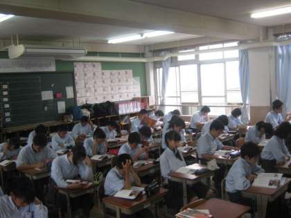 2年生では,読み物:「戦争を取材するジャーナリスト 山本美香」(あすを生きる2)という教材を使って,真理の探究,理想の実現を目指して について考えました。ジャーナリストの山本さんが自分の仕事の価値を見失いかけたにも関わらず,自分の仕事に人生をかける決意を見出した時の価値観などについて考えました。また,自分の理想の実現に向けて何を原動力とするのかについても考えました。