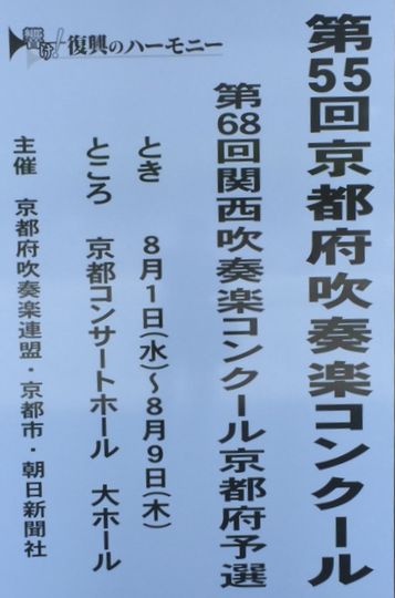 8月2日(木)第55回 京都府吹奏楽コンクール(中学校の部A)が京都コンサートホールで行われました。10:45から本番の演奏が行われました。部員全員心を1つにして演奏しましたが,結果は銅賞でした。お疲れ様でした。