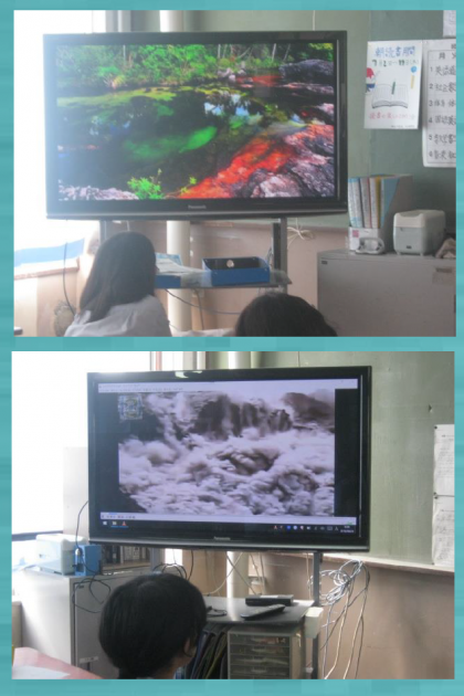 1年生では,映像資料を教材として,畏敬の念 について考えました。自然は「恐ろしい」ものか,「感動する」ものか,という相反する意見について話し合うことを通して,人間の力を超えたものに対する畏敬の念を深めました。