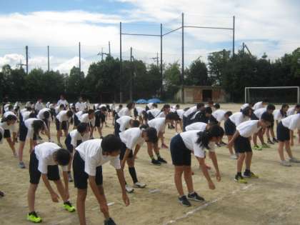 本日1・2限,1年生の学年合同体育が行われました。入場行進の練習から始まり,準備体操の練習,各競技の説明や招集確認などを行いました。当日はクラス一丸となって頑張ってください!