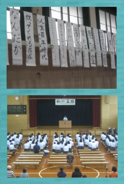 3年生は5・6限に学年大会を行い,各クラスの代表者20名が,それぞれのテーマで発表しました。部活動のことや家族への思い,生きることの意義など,自分自身を振り返り深く見つめる内容のものが多かったように思います。素晴らしい「私の主張」でした。多くの保護者の方にも参観していただきました。本当にありがとうございました。
