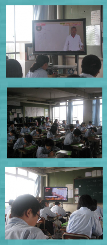 1年生では,前回からローテーション道徳を実施,ある先生は,映像:「魂の授業」(ゴルゴ松本)を教材として,真理の探究,創造 について考えました。ゴルゴ松本さんの講演から,理想の実現に向けて何が大切なのかを学びました。学校生活で大事にしたいことなどを意見交流しました。