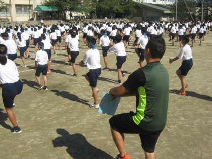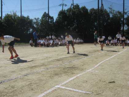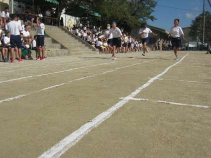 準備体操が終わり,いよいよ1番目の競技「100m走」が始まりました。