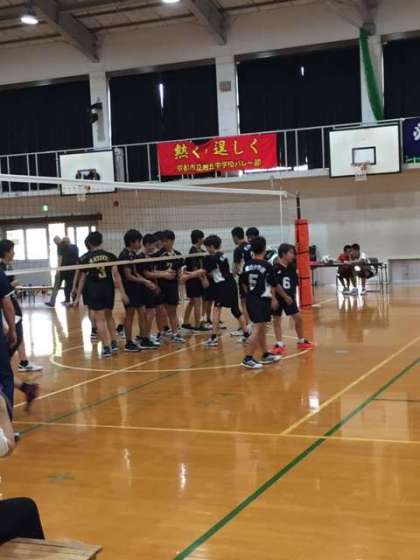 10月6日(土)に洛北中学校で予選リーグの2試合が行われました。松尾中学校との試合ではセットカウント 0−2 で,洛北中学校との試合ではセットカウント 0−2 で2戦とも敗れました。今後は決勝トーナメントでの勝利を目指さし,日々の練習に励んでください。