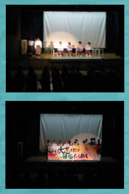 生徒会のクロージングです。「旭中生よ大志を抱け 〜リンク・積極・たくましく〜」をテーマに,1年間の活動を振り返りました。