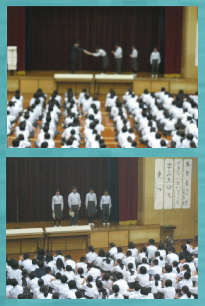 最後に「私の主張」の表彰を行い,生徒会長の閉会のあいさつをもって「展示・舞台の部」が幕を閉じました。展示も舞台発表も,力のこもった本当に素晴らしいものでした。ご苦労様でした!