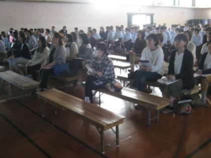 10月17日(水)6限から放課後にかけて,進路保護者会が開催されました。6限には3年生も参加して,高校の先生方2名にお越しいただき,公立・私立それぞれの立場からお話をしていただきました。