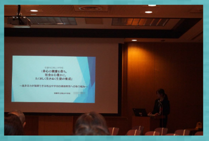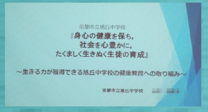 11月10日(土)京都市総合教育センターにおいて,『第54回 京都市学校保健研究発表会』が行われました。本校の保健主事の先生もパワーポイントを使って旭丘中学校の学校保健に関わるこの2年間の取組や成果・課題などを立派に発表していただきました。本当にありがとうございました。