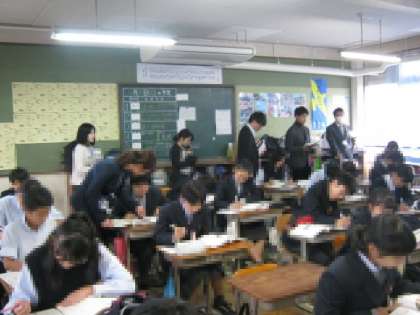 11月13日(火)6限に1−4で採用2年目授業研修会が行われました。本校の採用2年目の国語科の先生生が授業を行いました。グループ研修ということで,他5名の先生も参観に来られ,授業後は研究協議会も行われました。