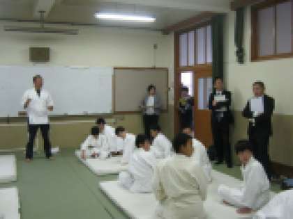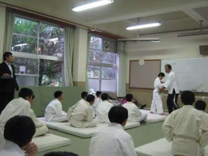 11月13日(火)6限に柔道場で採用3年目授業研修会が行われました。本校の採用3年目の保健体育科の先生生が柔道の授業を行いました。グループ研修ということで,他4名の先生も参観に来られ,授業後は研究協議会も行われました。
