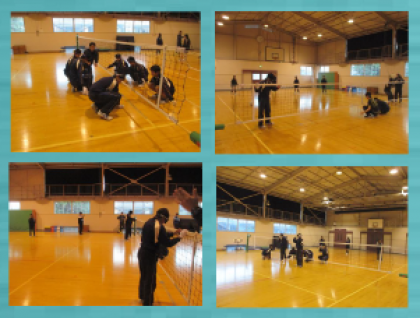 11月29日(木)京都府立盲学校に生徒会本部役員の生徒(10名)のみなさんが訪問しました。京都府立盲学校は旭丘中学校から徒歩10分程度の所にあります。この盲学校訪問【平成30年度オリンピック・パラリンピック教育推進校事業】は旭丘中学校の生徒と盲学校の生徒が視覚障害者スポーツ(フロアバレー)を通して交流し,視覚障害についての理解・啓発を図り,共にスポーツを楽しむことを目的としています。先週に続いて今日2回目の訪問では,準備体操の後,フロアバレーのパス練習やスパイク練習を行い,盲学校の高校生とゲームを通して交流を深めました。